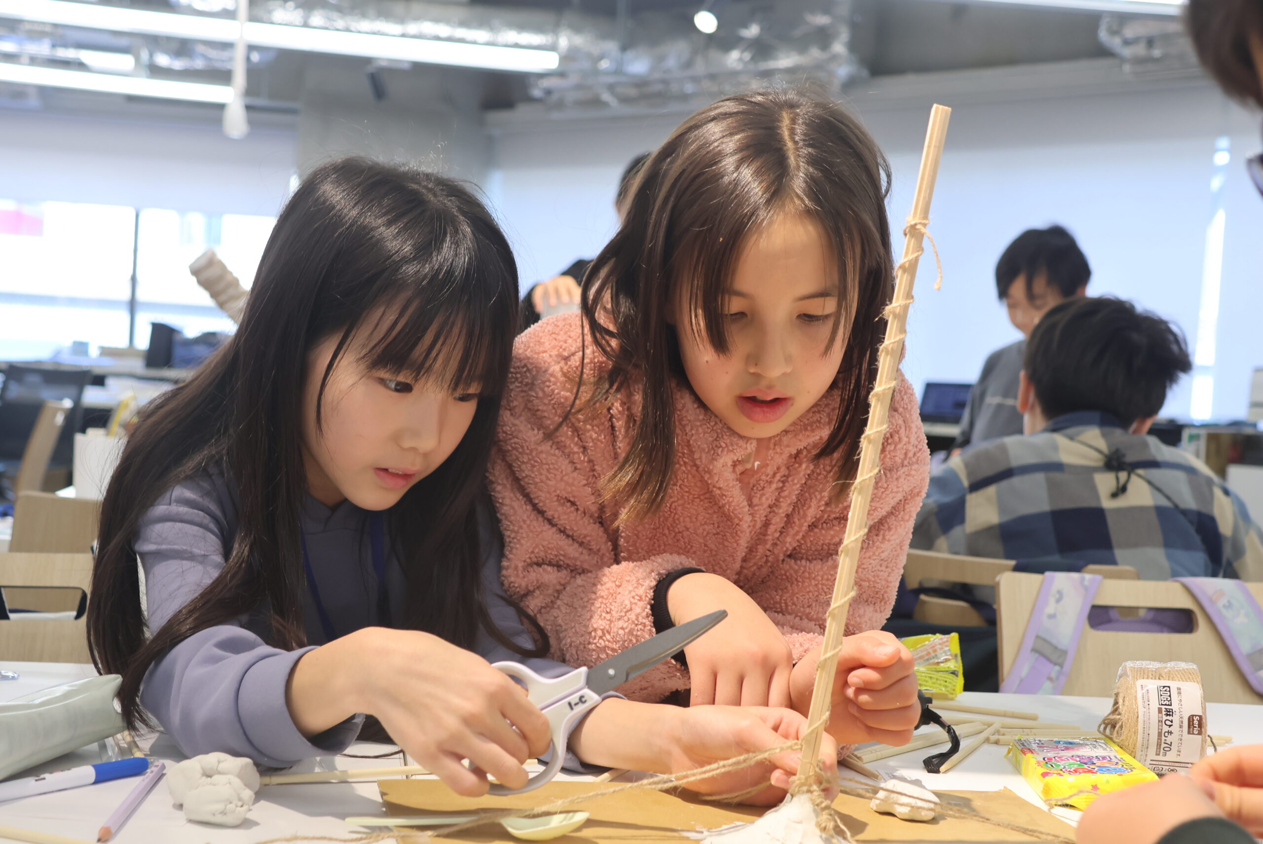 📍紐をつかって、グラグラしたところを引っ張ってグラグラしないようにした。(小4女子)