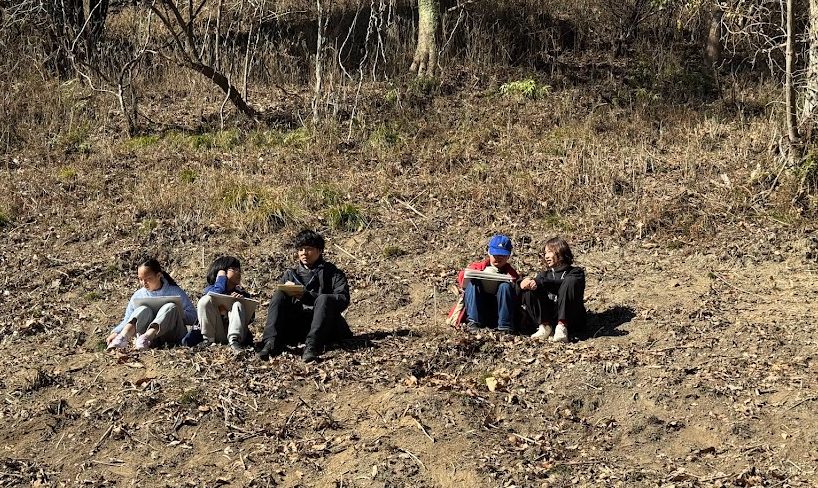 午前中は彩都の山にある「集いの広場」に入り、五感をフルに使った現地調査を行いました。