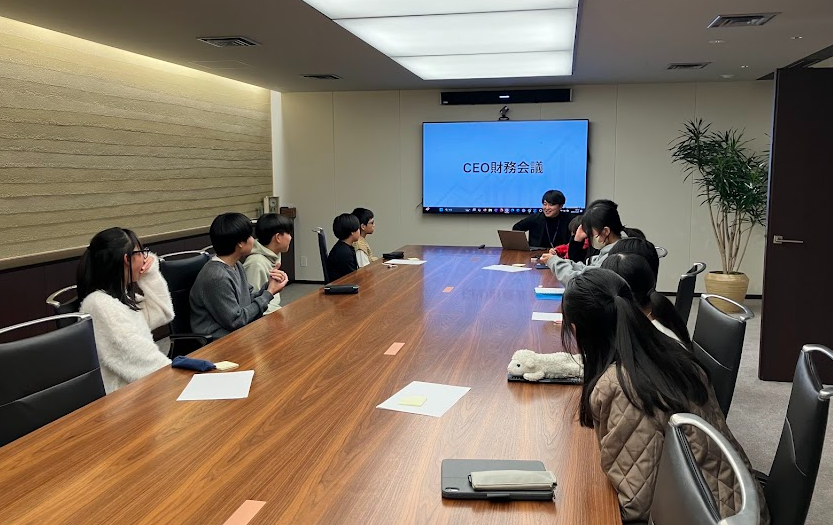 また、CEOと財務の担当者は、別室で「CEO財務会議」を実施。「チームが上手くまとまらない」「マルシェまで間に合うか不安、、」など、今困っていることや不安なことを共有し合いました。