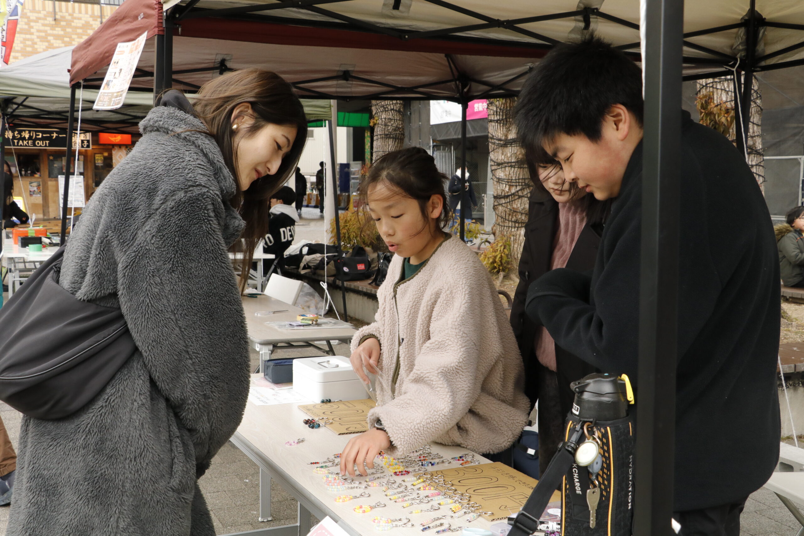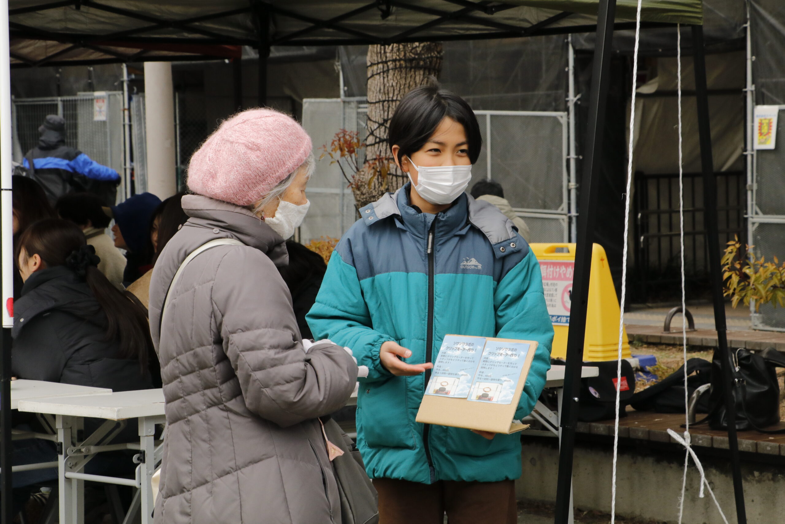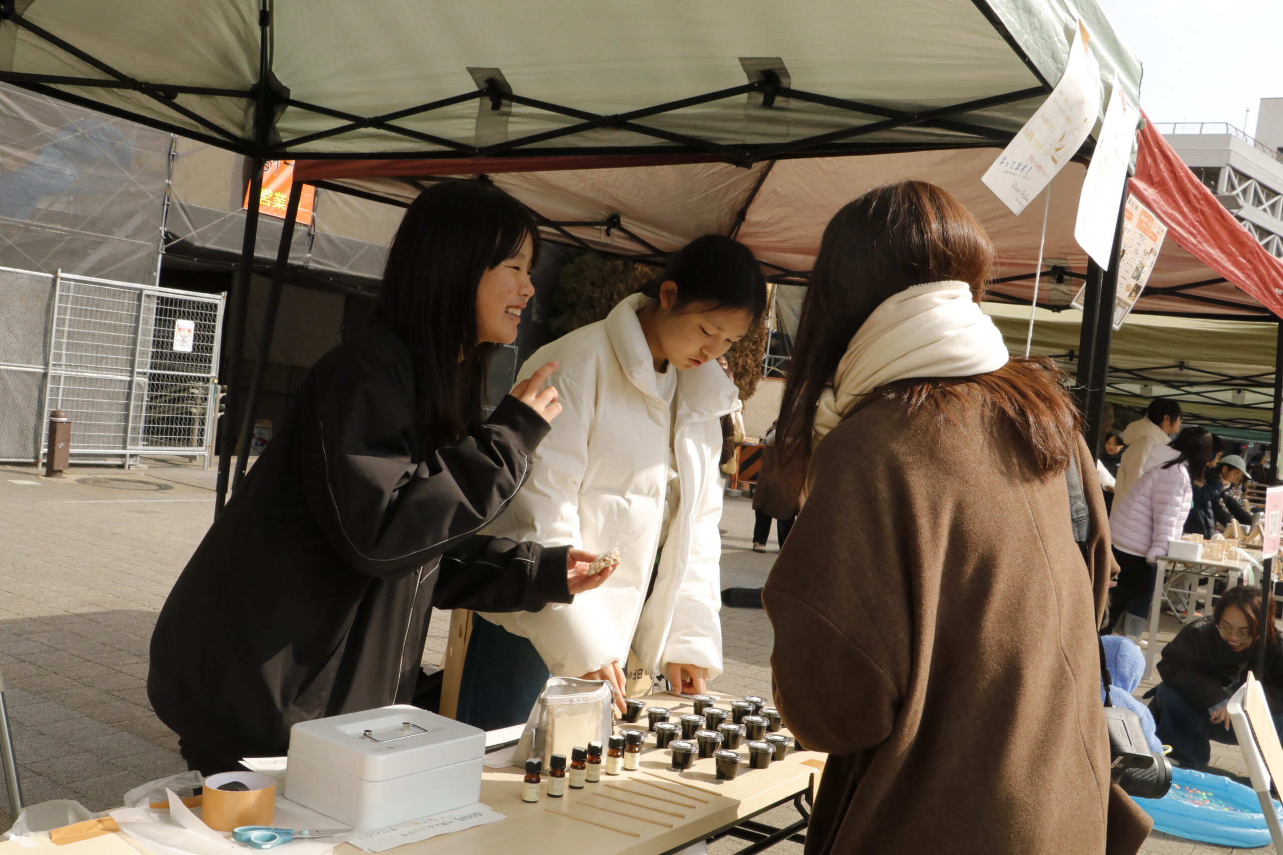 自分たちの商品の説明を一生懸命に伝えたり、街の人にチラシを配りながら魅力を伝えたり。